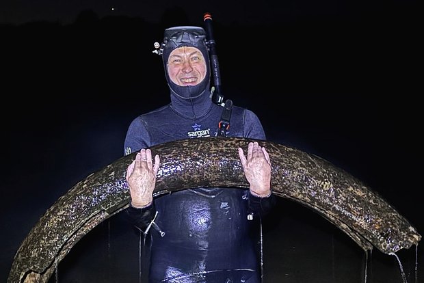 Гигантский бивень мамонта неожиданно нашли подводные охотники в Даровском районе Кировской области. Об этом сообщает издание Baza в своем Telegram.